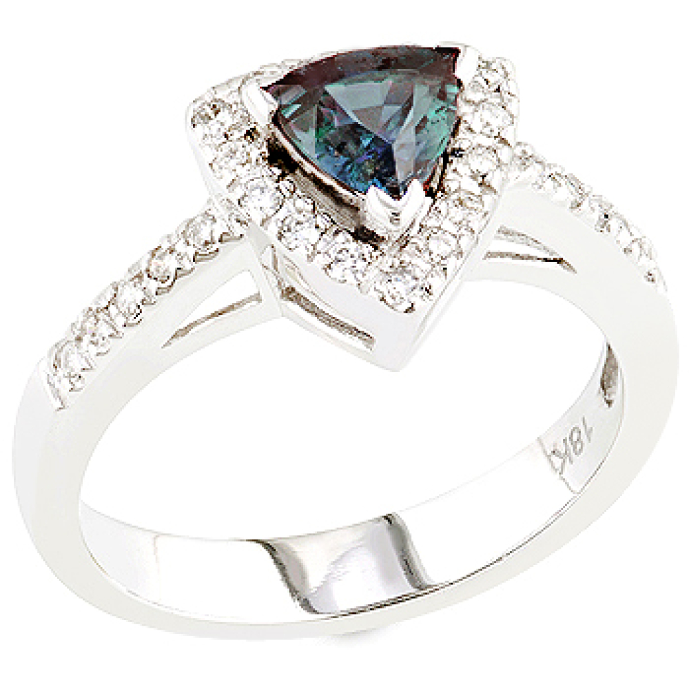 The color change in this Orissa alexandrite is exceptional! Somewhat dark in daylight, the stone is bright red under incandescent light. It is very unusual to find a fine alexandrite in this shape so we may never make another Alex ring like this.An AIGS alexandrite certificate is included with the purchase of this ring.